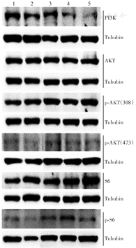 | 组别 | 样本数 | PI3K | AKT | p-AKT(308) | p-AKT(473) | S6 | p-S6 |