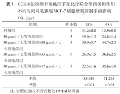 | 30 µmol/L依西美坦+50 µmol/L卡培他滨组 | 3 | 0.709±0.102 | 1.018±0.112 | 1.361±0.268 | 1.172±0.451 | 1.072±0.029 | 1.381±0.250 |