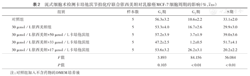 流式细胞术检测卡培他滨节拍化疗联合依西美坦对乳腺癌MCF-7细胞周期的影响(%,