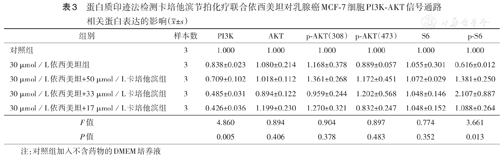 蛋白质印迹法检测卡培他滨节拍化疗联合依西美坦对乳腺癌MCF-7细胞PI3K-AKT信号通路相关蛋白表达的影响(