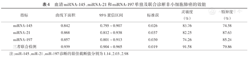 血清miRNA-145、miRNA-21和miRNA-197单独及联合诊断非小细胞肺癌的效能