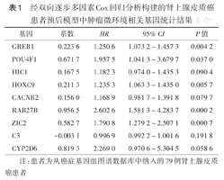 | 基因 | 系数 | HR | 95% CI | P值 |