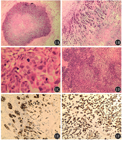 手术标本经10%中性甲醛溶液固定,常规取材,脱水处理,石蜡包埋,4 μm厚连续切片,行HE染色及免疫组织化学检查。免疫组织化学染色采用SP法,DAB显色。所用一抗包括CKpan、雌激素受体(ER)、孕激素受体(PR)、人表皮生长因子受体2(HER2)、Ki-67、p63、34βE12、Calponin、CK5/6、CK14、表皮生长因子受体(EGFR)、E-cadherin、Vimentin及S-100均购自北京中杉金桥公司,常规设阳性和阴性对照。