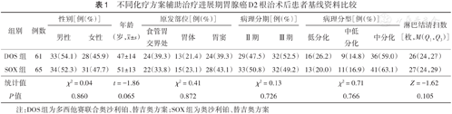 注:DOS组为多西他赛联合奥沙利铂、替吉奥方案;SOX组为奥沙利铂、替吉奥方案