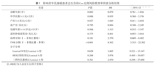 影响青年乳腺癌患者总生存的Cox比例风险模型单因素分析结果