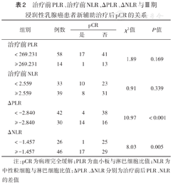 Ⅲ期浸润性乳腺癌患者新辅助治疗后ΔPLR和ΔNLR较高者预后较好。