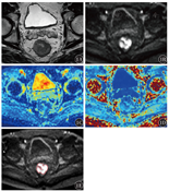 1例直肠癌患者MRI检查结果见图1。2名医师计算ADC、MD及MK的ICC分别为0.934(0.833~0.975)、0.963(0.905~0.981)、0.971(0.949~0.991),2名测量者间一致性良好。