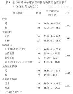 初诊时不同临床病理特征的黏膜黑色素瘤患者中位OS时间比较(月)