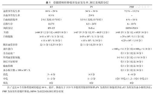骨髓增殖性肿瘤并发症发生率、预后及风险分层