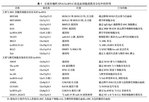 长链非编码RNA(lncRNA)在造血细胞成熟及分化中的作用