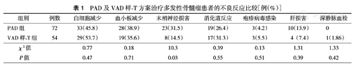 | PAD组 | 72 | 33(45.8) | 28(38.9) | 23(31.5) | 19(26.4) | 3(4.2) | 10(13.9) | 0 |