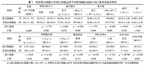 初诊高白细胞与非高白细胞急性早幼粒细胞白血病(APL)患者的临床特征