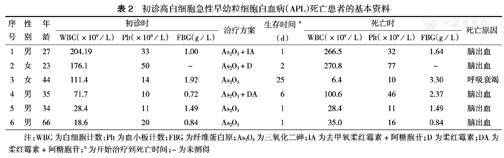 初诊高白细胞急性早幼粒细胞白血病(APL)死亡患者的基本资料