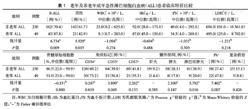 老年及非老年成年急性淋巴细胞白血病(ALL)患者临床特征比较