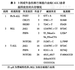 3例成年急性淋巴细胞白血病(ALL)患者基因改变的共存情况