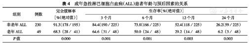 成年急性淋巴细胞白血病(ALL)患者年龄与预后因素的关系