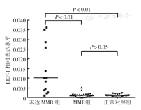 应用实时荧光定量聚合酶链反应测定38例CML-CP患者初诊和伊马替尼治疗后及20名正常对照骨髓单个核细胞的LEF-1 mRNA表达水平,分析其与伊马替尼治疗获得主要分子学反应(MMR)的关系。