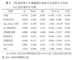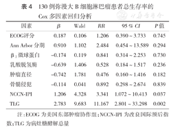 130例弥漫大B细胞淋巴瘤患者无进展生存率的Cox多因素回归分析
