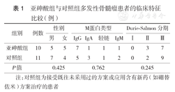 亚砷酸组与对照组多发性骨髓瘤患者的临床特征比较(例)