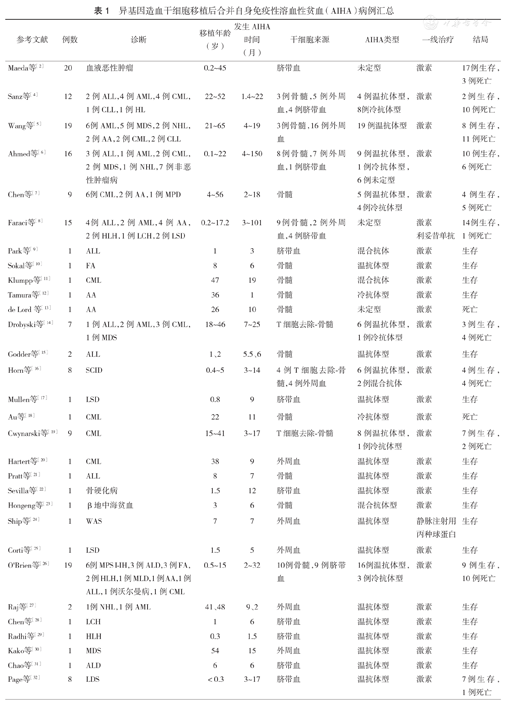 异基因造血干细胞移植后合并自身免疫性溶血性贫血(AIHA)病例汇总