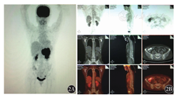 全身磁共振成像(MRI)的出现丰富了淋巴瘤骨髓浸润的检测手段。MRI是目前唯一能够清晰显示骨髓变化的影像学检查方法,能够区分正常骨髓与异常病变的显像信号。全身MRI对淋巴瘤骨髓浸润的灵敏度极高,达96.4%。但MRI对骨髓病变的特异度较低,而且对与淋巴瘤骨髓浸润类型相似的骨髓瘤、转移瘤、白血病及其他良、恶性骨髓病变难以区分[23]。因此,淋巴瘤骨髓浸润诊断仍需依赖骨髓病理检查。