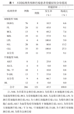 不同病理类型淋巴瘤患者骨髓浸润分布情况