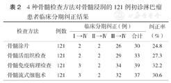 经骨髓检测确定的121例骨髓浸润患者中,共纠正临床分期42例(34.7%)。4种骨髓检测方法比较,骨髓免疫病理纠正临床分期最明显,纠正率为32.2%(39例)(表2)。