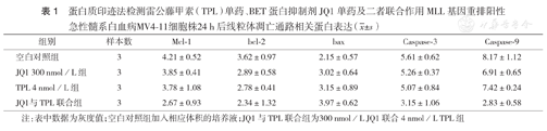 TPL可增强BET蛋白抑制剂JQ1对MLL基因重排阳性AML细胞的增殖抑制及凋亡诱导作用,其机制可能与增强线粒体凋亡途径相关。