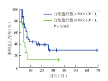 采用SPSS 25.0软件进行统计学分析。计量资料不符合正态分布,以中位数(范围)表示。采用Kaplan-Meier法进行生存分析,组间比较采用log-rank检验。预后影响因素分析采用Cox单因素分析及多因素分析。以P<0.05为差异有统计学意义。