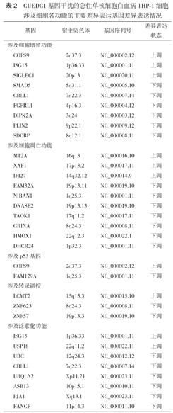 探讨CUEDC1基因对急性单核细胞白血病THP-1细胞基因表达谱的影响。