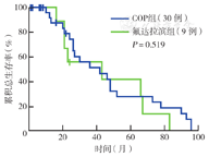 疗效评价参照淋巴瘤的疗效评价标准[3],分为完全缓解(CR)、部分缓解(PR)、病情稳定(SD)和疾病进展(PD)。总有效率(ORR)以CR+PR计算。通过住院病历及电话随访至2019年10月,期间无失访者。远期疗效观察指标为总生存(OS),即从确诊至任何原因所致死亡或随访结束的时间。