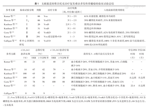| Costa等[20] | Ⅱ | 42 | VenKD | 2(1~3) | 50%硼替佐米耐药,62%免疫调节剂耐药,33%同时耐药 |