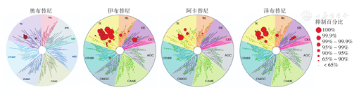 应用KINOMEscan平台测定显示,奥布替尼有更精准的激酶选择性。在对456种激酶的选择性检测中,1 µmol/L奥布替尼仅对BTK的抑制作用超过90%,对其他激酶没有明显抑制作用(图2)[4,5],提示奥布替尼靶区更集中,对其他非目标靶点抑制作用小,拥有最佳激酶选择性。
