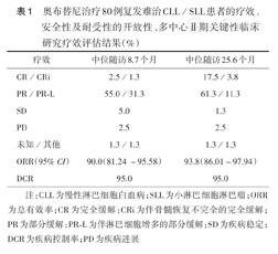 注:CLL为慢性淋巴细胞白血病;SLL为小淋巴细胞淋巴瘤;ORR为总有效率;CR为完全缓解;CRi为伴骨髓恢复不完全的完全缓解;PR为部分缓解;PR-L为伴淋巴细胞增多的部分缓解;SD为疾病稳定;DCR为疾病控制率;PD为疾病进展