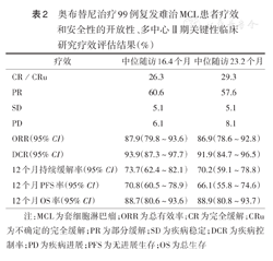 注:MCL为套细胞淋巴瘤;ORR为总有效率;CR为完全缓解;CRu为不确定的完全缓解;PR为部分缓解;SD为疾病稳定;DCR为疾病控制率;PD为疾病进展;PFS为无进展生存;OS为总生存