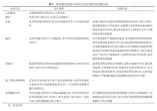 特别关注的相关不良反应发生情况、处理方法及其剂量调整分别见表5和表6。