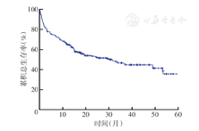 至随访结束,236例患者中115例(48.7%)死亡。患者中位OS时间为32个月,3年OS率为46%,5年OS率为36%(图1)。