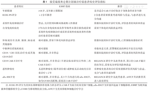 注:ECOG PS评分为美国东部肿瘤协作组体力状态评分;CAR-T为嵌合抗原受体T细胞;allo-HSCT为异基因造血干细胞移植;EBMT为欧洲血液和骨髓移植学会;GVHD为移植物抗宿主病;ASTCT为美国移植和细胞治疗学会