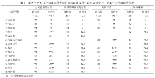 2015年至2019年徐州医科大学附属医院血液科住院患者感染的主要革兰阳性菌耐药情况