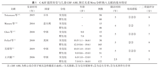系统评价C-KIT基因突变与儿童核心结合因子相关急性髓系白血病(CBF-AML)预后的关系。