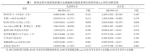 影响女性生殖系统弥漫大B细胞淋巴瘤患者预后的单因素Cox回归分析结果