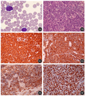 ATLL病例少见,容易发生误诊或漏诊,应与以下疾病鉴别诊断。(1)T-ALL/LBL:因ATLL细胞形态的多样性及免疫表型的不典型,当CD34、CD117原始标记均阴性,仅CD99阳性时,需考虑到ATLL,尤其在HTLV-1非流行区,应进行CD25表型检测,同时行HTLV前病毒基因检测,与T-ALL/LBL鉴别。(2)T细胞幼淋巴细胞白血病(T-PLL):T-PLL亦常出现白细胞计数升高伴有全身系统性症状,典型T-PLL细胞呈中等大小,缺乏ATLL细胞明显的多形性,有明显的中位核仁,骨髓通常广泛浸润,取代正常骨髓结构,肿瘤细胞特征性表达TCL1。本组中的例2最初考虑为T-PLL,但细胞形态不符合,且TCL1阴性。(3)蕈样霉菌病(MF):约半数以上ATLL伴有皮肤损害,尤其是MF或干燥综合征(SS)样的皮疹,MF的肿瘤细胞亲表皮,核呈"脑回形",通常不表达CD25,且患者无HTLV感染。(4)ALK阴性间变性大细胞淋巴瘤(ALK- ALCL):少数具有间变形态的ATLL可表达CD30,ALK- ALCL肿瘤细胞呈黏附性生长,表达EMA和细胞毒分子,无HTLV感染。(5)外周T细胞淋巴瘤,非特指型(PTCL-NOS):PTCL-NOS是排除性的诊断,本组例2因流式检测提示CD25阴性,最初诊断为PTCL-NOS,但HTLV-1前病毒基因阳性,最终确诊为ATLL,后经组织学检测证实CD25表达阳性。