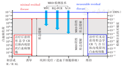 国内外多数文献通过确定的阈值将MRD分为阳性和阴性两种状态,然而由于灵敏度所限,文献中描述的MRD阴性可以是经过治疗后患者体内存在白血病细胞但现有技术手段检测不到,也可以是患者体内已不存在白血病细胞[16]。因此部分学者提出将MRD阳性和阴性分别称为"detectable MRD(可检测到的MRD)"和"undetectable MRD(未检测到的MRD)"。然而,"detectable"和"undetectable"两个名词中"undetectable"的提出仍没有解决MRD阴性引起的歧义问题。