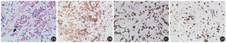 患者,男性,41岁,2021年4月右侧大腿外侧皮肤多发红斑丘疹,伴瘙痒(图1A),于外院诊为"皮囊炎"。经火疗、服用中药后效果不佳,丘疹扩大破溃,中间可见脓性分泌物,于当地医院行脓肿切开引流术后创面不愈合。2021年6月29日就诊于我院。查体:右侧大腿外侧见2 cm×3 cm创面,深达深筋膜层,创面覆有脓性分泌物,周围红肿,触之疼痛(图1B),于局部麻醉下行右下肢清创和局部皮瓣转移修复术,术后创面不愈合,外用表皮生长因子,创面扩大至3 cm×4 cm。8月27日行右下肢皮损组织活组织检查,病理结果提示水肿组织间查见显著异型细胞(图2A)。免疫组织化学检查:ALK(图2B)、CD30(图2C)、CD4、CD2均阳性,TIA-1部分阳性,S-100、SOX-10、CD68、CD3、CD20、SMA、MyoD1、Desmin、CK、CD1a均阴性,Ki-67大细胞增殖指数高(图2D)。考虑为原发于皮肤的CD30阳性T细胞增生性病变,符合PC-ALCL。PET-CT提示:右股根部外侧术区局部皮肤局限性增厚且高度摄取氟代脱氧葡萄糖(FDG),考虑肿瘤残留可能大;全身多骨骼/髓淋巴瘤浸润不除外。