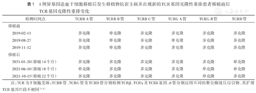 allo-HSCT后出现TCR基因克隆性重排现象并非一定提示肿瘤,可能与GVHD导致的淋巴细胞发育紊乱有关,应进行综合评判。
