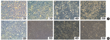 注:1D、3D、4D和5D分别代表接种于Vero细胞后24 h、72 h、96 h和120 h,100×