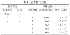 | 标本类型 | Ct值 | 传代次数 | 培养时间(h) | 拷贝(/μL) |