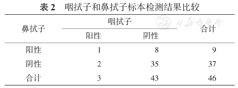 17个新型冠状病毒肺炎病例恢复期有46人次同时采集咽拭子和鼻拭子标本,经检测两种标本同时阳性有1人次,咽拭子单阳性2人次,鼻拭子单阳性8人次。经统计学计算,x2=2.500,P>0.05,咽拭子和鼻拭子两种类型标本阳性率差异无统计学意义(见表2)。其中有18人次同时采集咽拭子、鼻拭子和痰液标本,结果1人次咽拭子和痰液标本病毒核酸检测同时阳性,2人次鼻拭子检测单阳性。三种标本检测阳性率差异亦无统计学意义(x2=0.068,P>0.05)。