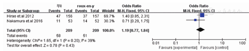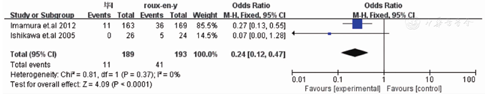 荟萃研究结果显示Roux-en-Y较毕Ⅰ的一些优点,但是对于Roux-en-Y和毕Ⅰ这两种重建方式的哪一种更适合远端胃癌根治术仍需更科学的多中心的随机对照研究来证实。