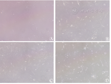注:Ⓐ~Ⓒ:分别为第2、3、4代纤维母细胞,细胞呈梭形,典型纤维母细胞形态,双极或多极;Ⓓ:第5代纤维母细胞,可见细胞集落形成。